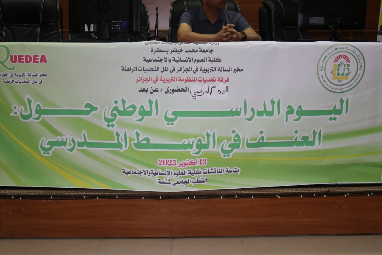 كلية العلوم الإنسانية والاجتماعية بجامعة بسكرة تنظم يومًا دراسيًا حول "العنف في الوسط المدرسي"
